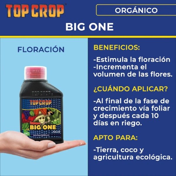 Big One de Top Crop es un estimulador de la floración formulado a base de extracto de alga del género Ascophyllum nodosum. Fuente natural de citoquininas y otros reguladores de crecimiento con gran actividad biológica.