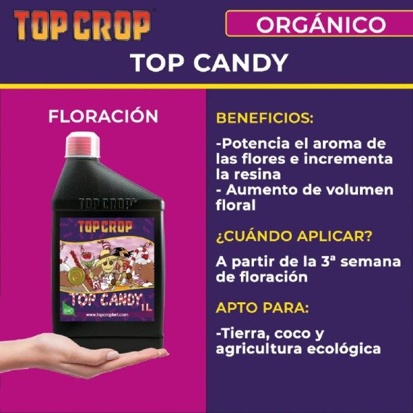 Top Candy es un producto 100% natural y orgánico por lo que puede emplearse hasta el último día del ciclo.
